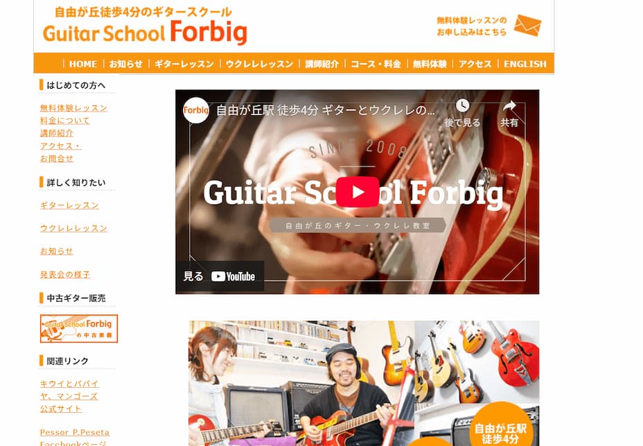 ギタースクールForbig は、5歳から70代まで幅広い世代が通う人気のギター教室です。「弾きたい!」気持ちを最大限にサポート。初心者から上級者まで目的やレベルに合わせて、個人に最適なきめ細かいレッスンを提供してくれます。楽器レンタルは無料なので気軽にレッスンに通いやすく、体験レッスンから楽器購入まで最長1か月間、入門用ギター(エレキの方には小型アンプ等一式)を自宅練習用に無料レンタルしてくれるので、ゆっくり自分に合った楽器を選ぶことができます。発表会やバンド活動も盛んなので、レッスンだけでなく楽しくコミュニティが広がるギタースクールです。