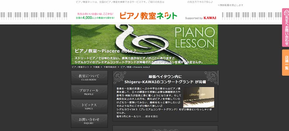 | コース | 大人ビギナーコース、大人アドバンスコース、ゴールサポートコース、キッズピアノコース |